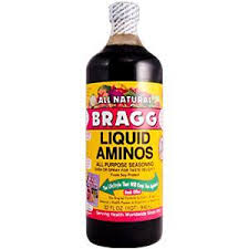 Liquid Aminos is kind of like soy sauce, but it doesn't taste like soy sauce -- it's just the same consistency and color. And it's a complete protein. Weird, but just trust me and head out to your local health store and get some because it is GOOD and you can also use it in my super favorite soup EVER, Zuchhini Cashew Soup. It's also good on salads, rice, stir fries...whatever.